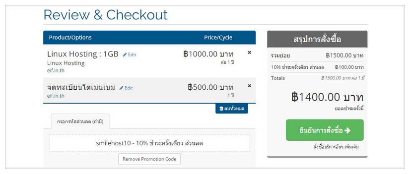 - หลังจากที่ท่านชำระเงินเรียบร้อยแล้ว สามารถแจ้งการชำระเงินโดยส่งมาที่ support@smilehost.asia หรือ แจ้งชำระเงินแล้วผ่านระบบออนไลน์ได้ที่นี่